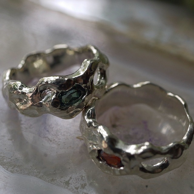 ありそうでなかなかない、うねうねぷっくり感。 曲線美と程よいボリューム感を意識してお作りしました。 こちらは在庫ございますので注文いただいてから1〜3日で発送可能です。 表記以外のサイズは受注製作可能です。納期は一週間〜二週間ほどいただきます。 素材/SV925 サイズ/9号、12号 ※表記サイズ以外も対応可。メールにてご相談ください。 大きさ/モチーフ部分:約11mm、リング幅:約3〜3.5mm 以下ご購入前に必ずお読みください。 ●はじめに ジュエリーは繊細です。強い衝撃を与えたりしますと物によっては変形や破損の原因になります。 天然石はデザイン上石留めしているものと接着しているものがございます。接着の場合は90度以上のお湯につけると石が取れてしまいますのでご注意ください。シルバー、真鍮、天然石、パールを使った製品を付けたままのご入浴はお勧めいたしません。 ●商品に関しまして 〈SV925〉 シルバーは空気に触れると、大気中微量に含まれる硫黄に反応し硫化(変色)します。水気にも弱いため汗をかいてそのままにしたり、つけたまま温泉に入ったりするとたちまち変色します。 保管の際は空気に触れないようチャック付きビーニール袋に入れたり、濡れてしまった場合は水気をしっかり取って頂くことで変色を予防できます。変色してしまった場合はシルバー磨きクロスで磨いたり、専用の液体につけるとすぐに綺麗になります。※シルバー磨きクロスは販売しておりますのでお持ちでない方は是非購入ください。 〈真鍮〉 シルバー同様変色しやすい素材です。特に水気に弱く汗や化粧水が付着した場合は綺麗に拭き取ってから保管してください。着用したままの入浴もお控えください。変色した場合真鍮磨きクロスで拭き取っていただければ綺麗になります。※真鍮磨きクロスは販売しておりますのでお持ちでない方は是非ご購入下さい。※金属アレルギーの方は購入をお控え下さい。 〈Gold〉 ゴールドに関しましては経年劣化の少ない素材です。(10Kなどゴールドの割合が低い場合多少の変色もございます。)金属アレルギーの方も安心して着用できます。 ●サイズに関しまして ご購入される前に必ずご自身でご確認ください。お店のリングサイズで測って頂くことをお勧め致します。ご購入後のサイズ違いなどに関しましては、無償での返品交換は致しかねますのでご理解いただければと思います。サイズ変更の場合の配送料はお客様負担となります。サイズ直しは有料で行っておりますが商品によってご案内が異なりますのでメールにてお問い合わせください。 ●発送に関しまして 全国一律600円レターパックプラスにての発送となります。送料はお客様にご負担いただいております。 納期に関しましてはご入金から在庫のあるものは10日以内、受注生産のものは2週間〜1ヶ月以内に発送いたします。到着日のご指定は頂けませんのでご了承ください。 ●お支払い方法に関しまして クレジットカード 銀行振込 コンビニ・Pay-easy決済 キャリア決済 がご利用頂けます。 ●返品交換に関しまして 商品に欠陥がある場合を除き、返品交換は致しかねます。配送による破損、商品の不備などに関しましては到着後1週間以内にご連絡いただければ対応させて頂きます。お客様都合(着用時の傷・破損、サイズ違い、イメージとの相違等)での返品交換は致しかねますのでご注意くださいませ。※購入後のサイズ変更は配送料をお客様負担とさせて頂きますのでご了承ください。サイズ直しに関しましては商品によってご案内が異なりますのでメールにてお問い合わせいただけたらと思います。