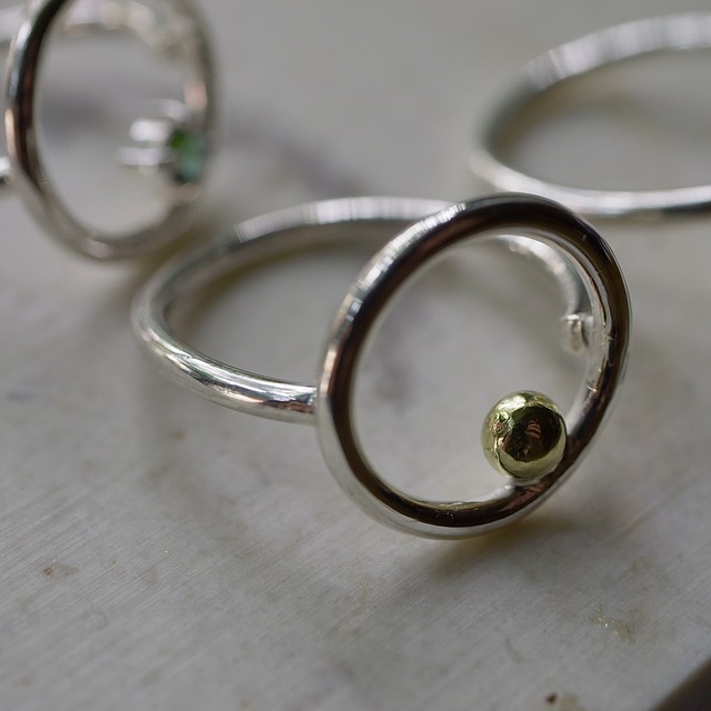 1.5mmのシルバーの丸線に2.5mmの天然石と真鍮のボールをちょこんとくっつけました。 こちらは在庫ございますので注文いただいてから1〜3日で発送可能です。 素材/シルバー色:SV925、天然石(ガーネット、オニキス)、真鍮 サイズ/5〜11号 大きさ/モチーフ部分:約13mm、リング幅:約1.5mm 以下ご購入前に必ずお読みください。 ●はじめに ジュエリーは繊細です。強い衝撃を与えたりしますと物によっては変形や破損の原因になります。 天然石はデザイン上石留めしているものと接着しているものがございます。接着の場合は90度以上のお湯につけると石が取れてしまいますのでご注意ください。シルバー、真鍮、天然石、パールを使った製品を付けたままのご入浴はお勧めいたしません。 ●商品に関しまして 〈SV925〉 シルバーは空気に触れると、大気中微量に含まれる硫黄に反応し硫化(変色)します。水気にも弱いため汗をかいてそのままにしたり、つけたまま温泉に入ったりするとたちまち変色します。 保管の際は空気に触れないようチャック付きビーニール袋に入れたり、濡れてしまった場合は水気をしっかり取って頂くことで変色を予防できます。変色してしまった場合はシルバー磨きクロスで磨いたり、専用の液体につけるとすぐに綺麗になります。※シルバー磨きクロスは販売しておりますのでお持ちでない方は是非購入ください。 〈真鍮〉 シルバー同様変色しやすい素材です。特に水気に弱く汗や化粧水が付着した場合は綺麗に拭き取ってから保管してください。着用したままの入浴もお控えください。変色した場合真鍮磨きクロスで拭き取っていただければ綺麗になります。※真鍮磨きクロスは販売しておりますのでお持ちでない方は是非ご購入下さい。※金属アレルギーの方は購入をお控え下さい。 〈Gold〉 ゴールドに関しましては経年劣化の少ない素材です。(10Kなどゴールドの割合が低い場合多少の変色もございます。)金属アレルギーの方も安心して着用できます。 ●サイズに関しまして ご購入される前に必ずご自身でご確認ください。お店のリングサイズで測って頂くことをお勧め致します。ご購入後のサイズ違いなどに関しましては、無償での返品交換は致しかねますのでご理解いただければと思います。サイズ変更の場合の配送料はお客様負担となります。サイズ直しは有料で行っておりますが商品によってご案内が異なりますのでメールにてお問い合わせください。 ●発送に関しまして 全国一律600円レターパックプラスにての発送となります。送料はお客様にご負担いただいております。 納期に関しましてはご入金から在庫のあるものは10日以内、受注生産のものは2週間〜1ヶ月以内に発送いたします。到着日のご指定は頂けませんのでご了承ください。 ●お支払い方法に関しまして クレジットカード 銀行振込 コンビニ・Pay-easy決済 キャリア決済 がご利用頂けます。 ●返品交換に関しまして 商品に欠陥がある場合を除き、返品交換は致しかねます。配送による破損、商品の不備などに関しましては到着後1週間以内にご連絡いただければ対応させて頂きます。お客様都合(着用時の傷・破損、サイズ違い、イメージとの相違等)での返品交換は致しかねますのでご注意くださいませ。※購入後のサイズ変更は配送料をお客様負担とさせて頂きますのでご了承ください。サイズ直しに関しましては商品によってご案内が異なりますのでメールにてお問い合わせいただけたらと思います。
