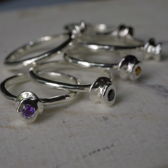 ドアノブのような形のモチーフに2.0mmの天然石をセットしました。 こちらは在庫ございますので注文いただいてから1〜3日で発送可能です。 表記以外のサイズは受注製作可能です。納期は一週間〜二週間ほどいただきます。 素材/SV925、天然石(シトリン、トルマリン、アメジスト) サイズ/6号〜12号 ※表記サイズ以外も対応可。メールにてご相談ください。 大きさ/モチーフ部分:約4.0mm、天然石大きさ:2.0mm、リング幅:約2.0mm 以下ご購入前に必ずお読みください。 ●はじめに ジュエリーは繊細です。強い衝撃を与えたりしますと物によっては変形や破損の原因になります。 天然石はデザイン上石留めしているものと接着しているものがございます。接着の場合は90度以上のお湯につけると石が取れてしまいますのでご注意ください。シルバー、真鍮、天然石、パールを使った製品を付けたままのご入浴はお勧めいたしません。 ●商品に関しまして 〈SV925〉 シルバーは空気に触れると、大気中微量に含まれる硫黄に反応し硫化(変色)します。水気にも弱いため汗をかいてそのままにしたり、つけたまま温泉に入ったりするとたちまち変色します。 保管の際は空気に触れないようチャック付きビーニール袋に入れたり、濡れてしまった場合は水気をしっかり取って頂くことで変色を予防できます。変色してしまった場合はシルバー磨きクロスで磨いたり、専用の液体につけるとすぐに綺麗になります。※シルバー磨きクロスは販売しておりますのでお持ちでない方は是非購入ください。 〈真鍮〉 シルバー同様変色しやすい素材です。特に水気に弱く汗や化粧水が付着した場合は綺麗に拭き取ってから保管してください。着用したままの入浴もお控えください。変色した場合真鍮磨きクロスで拭き取っていただければ綺麗になります。※真鍮磨きクロスは販売しておりますのでお持ちでない方は是非ご購入下さい。※金属アレルギーの方は購入をお控え下さい。 〈Gold〉 ゴールドに関しましては経年劣化の少ない素材です。(10Kなどゴールドの割合が低い場合多少の変色もございます。)金属アレルギーの方も安心して着用できます。 ●サイズに関しまして ご購入される前に必ずご自身でご確認ください。お店のリングサイズで測って頂くことをお勧め致します。ご購入後のサイズ違いなどに関しましては、無償での返品交換は致しかねますのでご理解いただければと思います。サイズ変更の場合の配送料はお客様負担となります。サイズ直しは有料で行っておりますが商品によってご案内が異なりますのでメールにてお問い合わせください。 ●発送に関しまして 全国一律600円レターパックプラスにての発送となります。送料はお客様にご負担いただいております。 納期に関しましてはご入金から在庫のあるものは10日以内、受注生産のものは2週間〜1ヶ月以内に発送いたします。到着日のご指定は頂けませんのでご了承ください。 ●お支払い方法に関しまして クレジットカード 銀行振込 コンビニ・Pay-easy決済 キャリア決済 がご利用頂けます。 ●返品交換に関しまして 商品に欠陥がある場合を除き、返品交換は致しかねます。配送による破損、商品の不備などに関しましては到着後1週間以内にご連絡いただければ対応させて頂きます。お客様都合(着用時の傷・破損、サイズ違い、イメージとの相違等)での返品交換は致しかねますのでご注意くださいませ。※購入後のサイズ変更は配送料をお客様負担とさせて頂きますのでご了承ください。サイズ直しに関しましては商品によってご案内が異なりますのでメールにてお問い合わせいただけたらと思います。