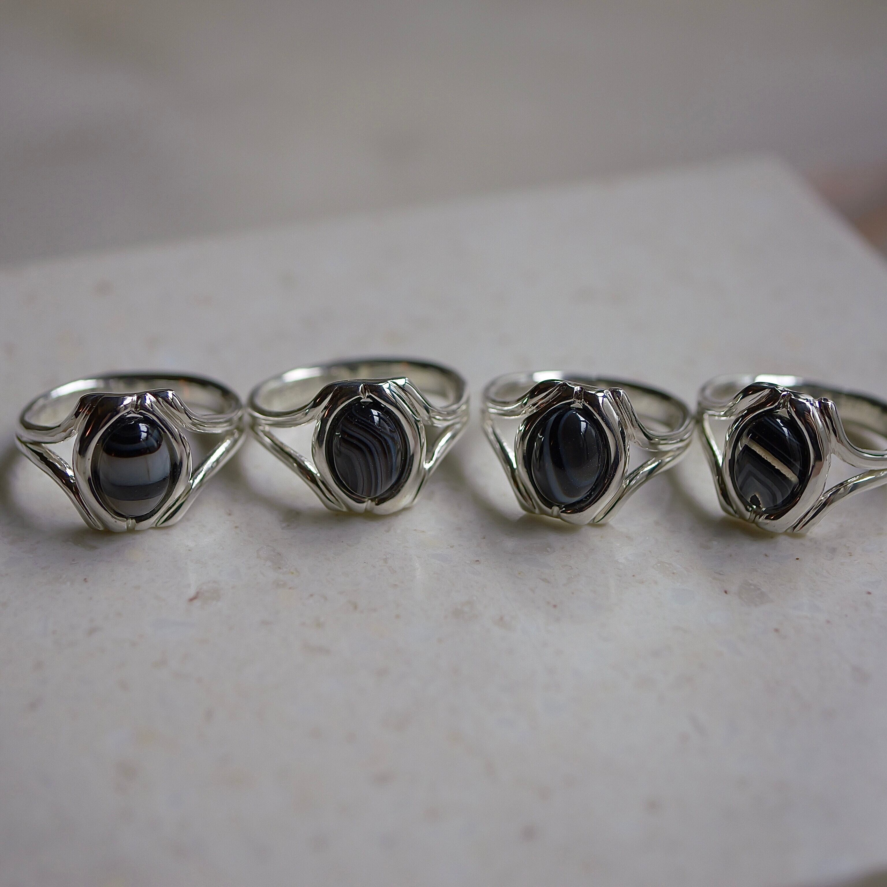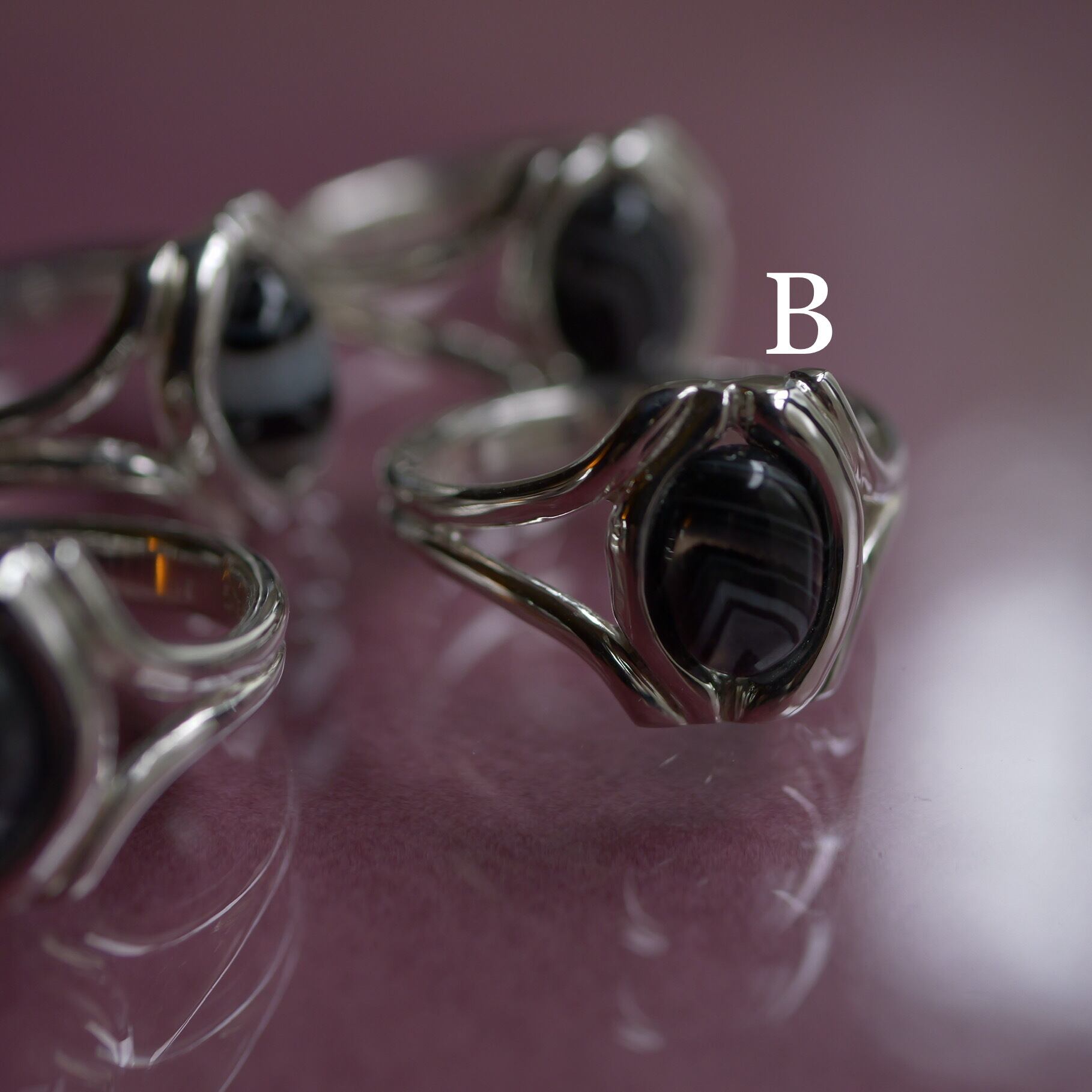 いちじくのような石枠に6.0mm×8mmのオニキス(縞入り)をセットしました。