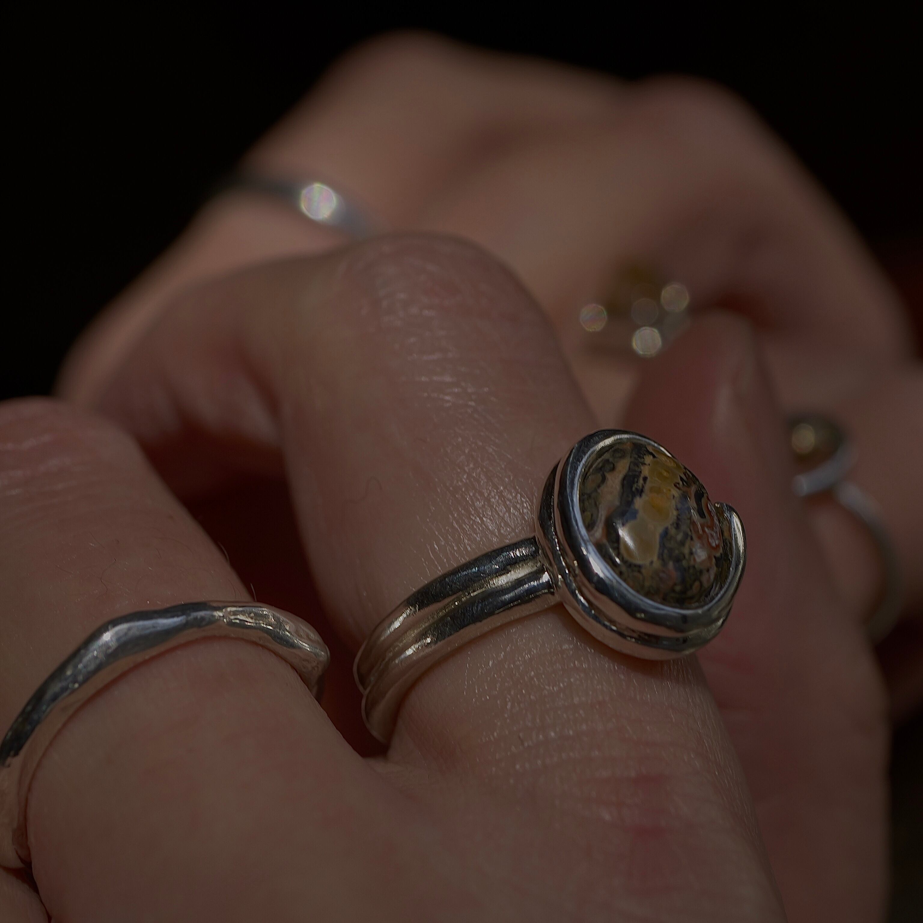 2本のシルバーの線でぐるりんと天然石を包んだデザインです。
