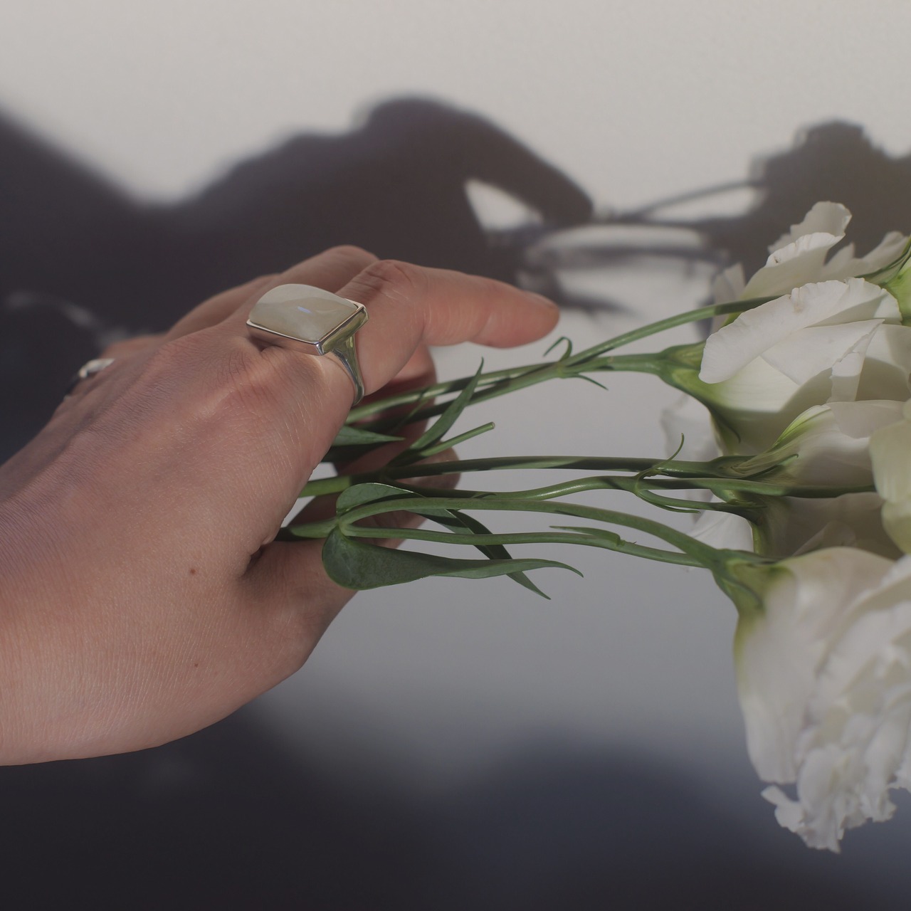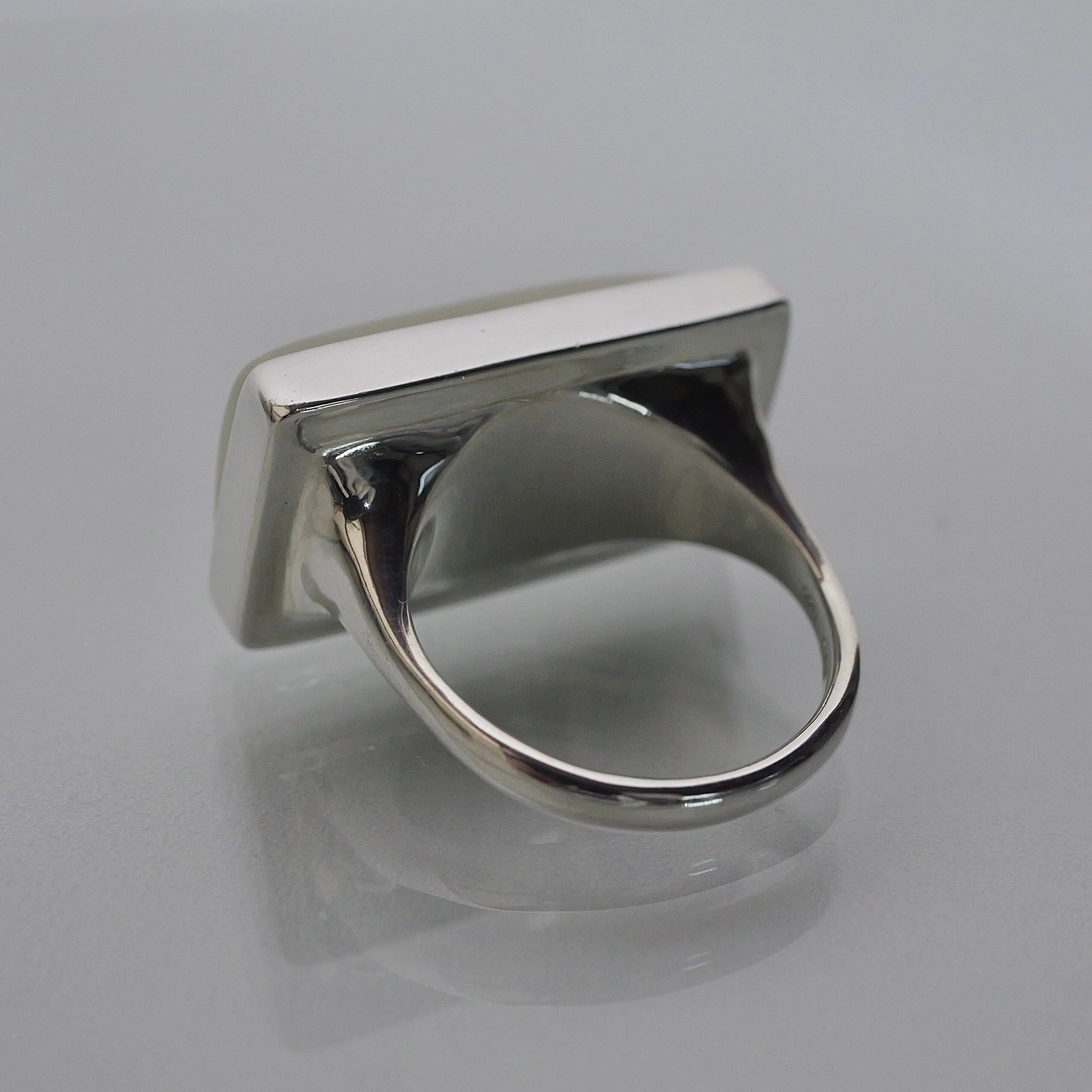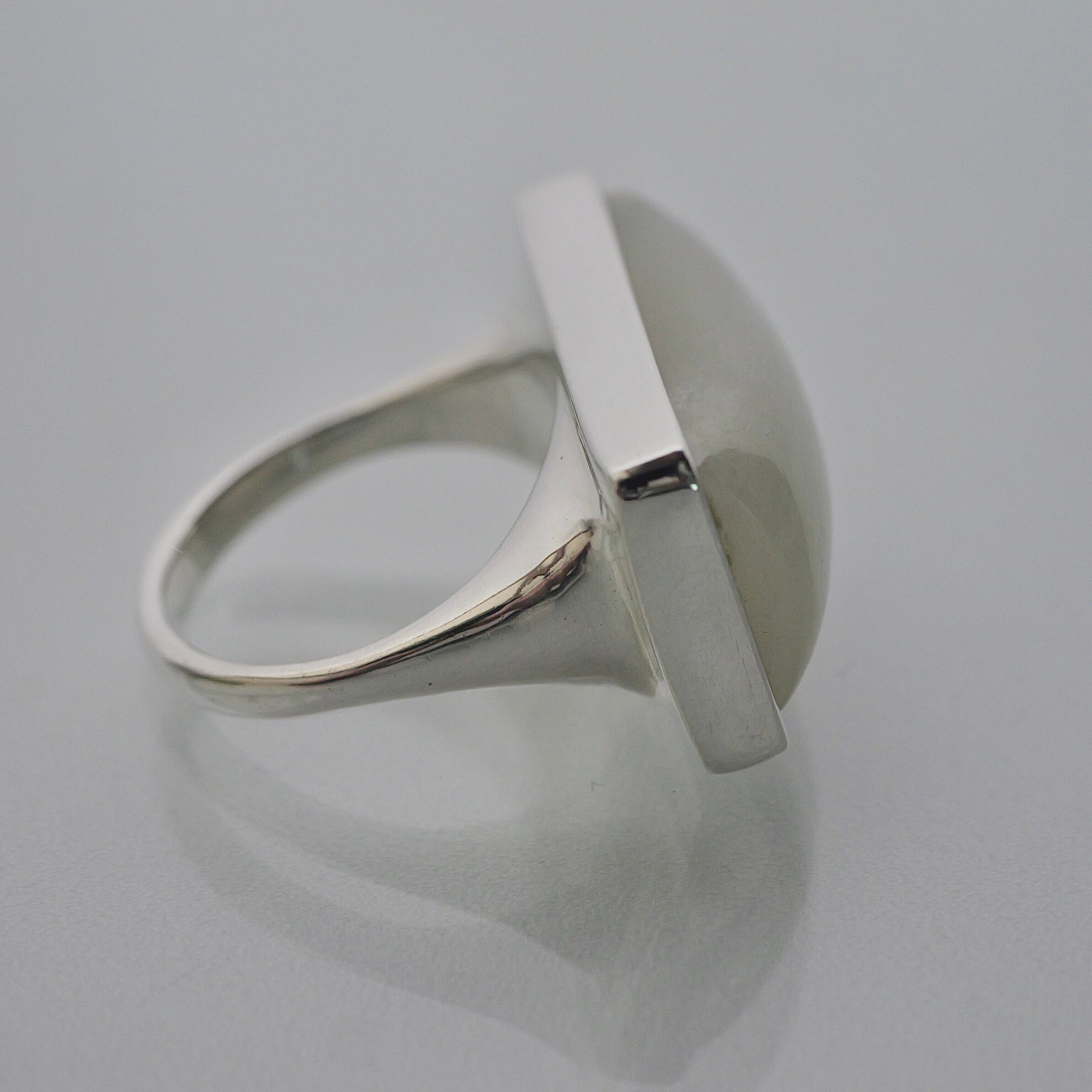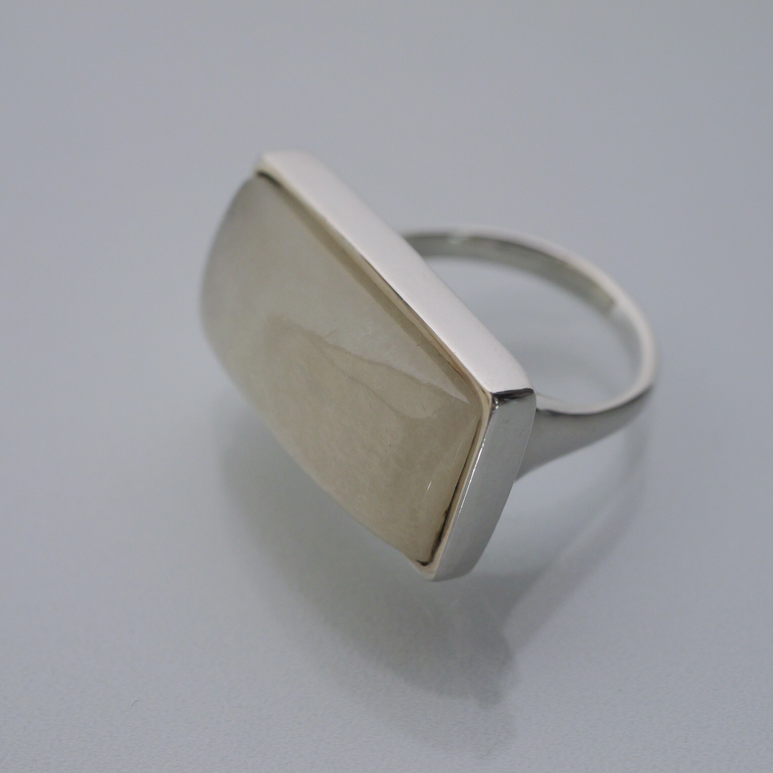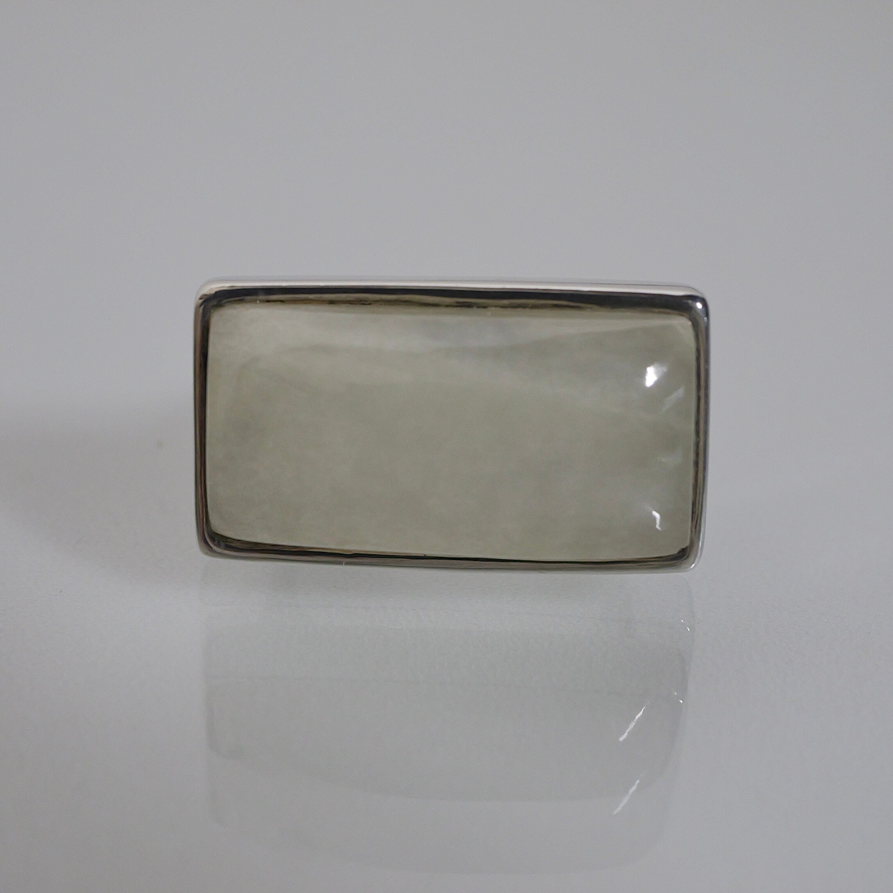 大きな白翡翠(ヒスイ)のリングはこれ一つでコーディネートのアクセントに。