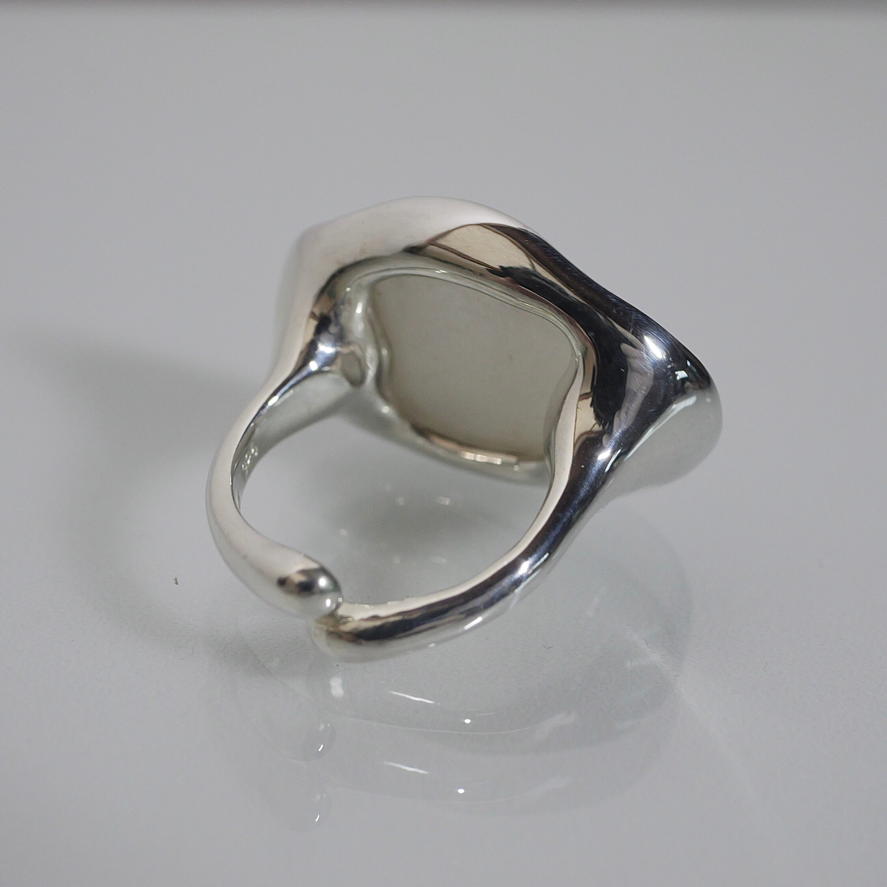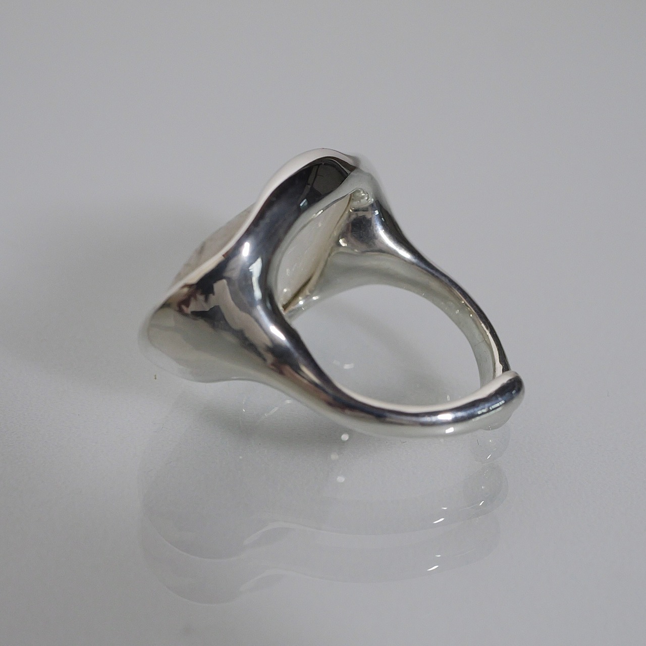ホワイトなのでもちろん合わせやすいです。石枠はシンプルながら曲線とボリューム感が個性的です。フリーサイズでのおつくりです。