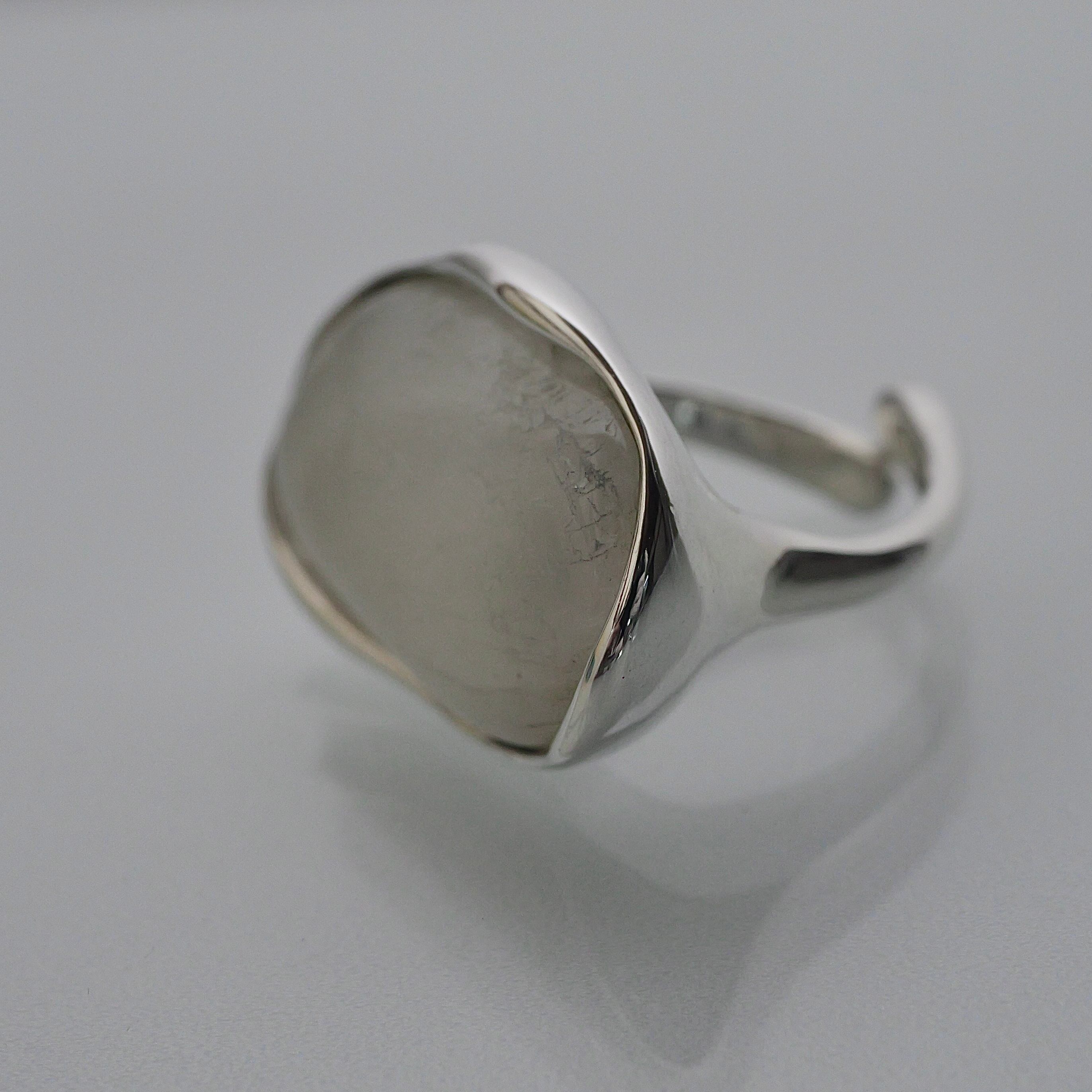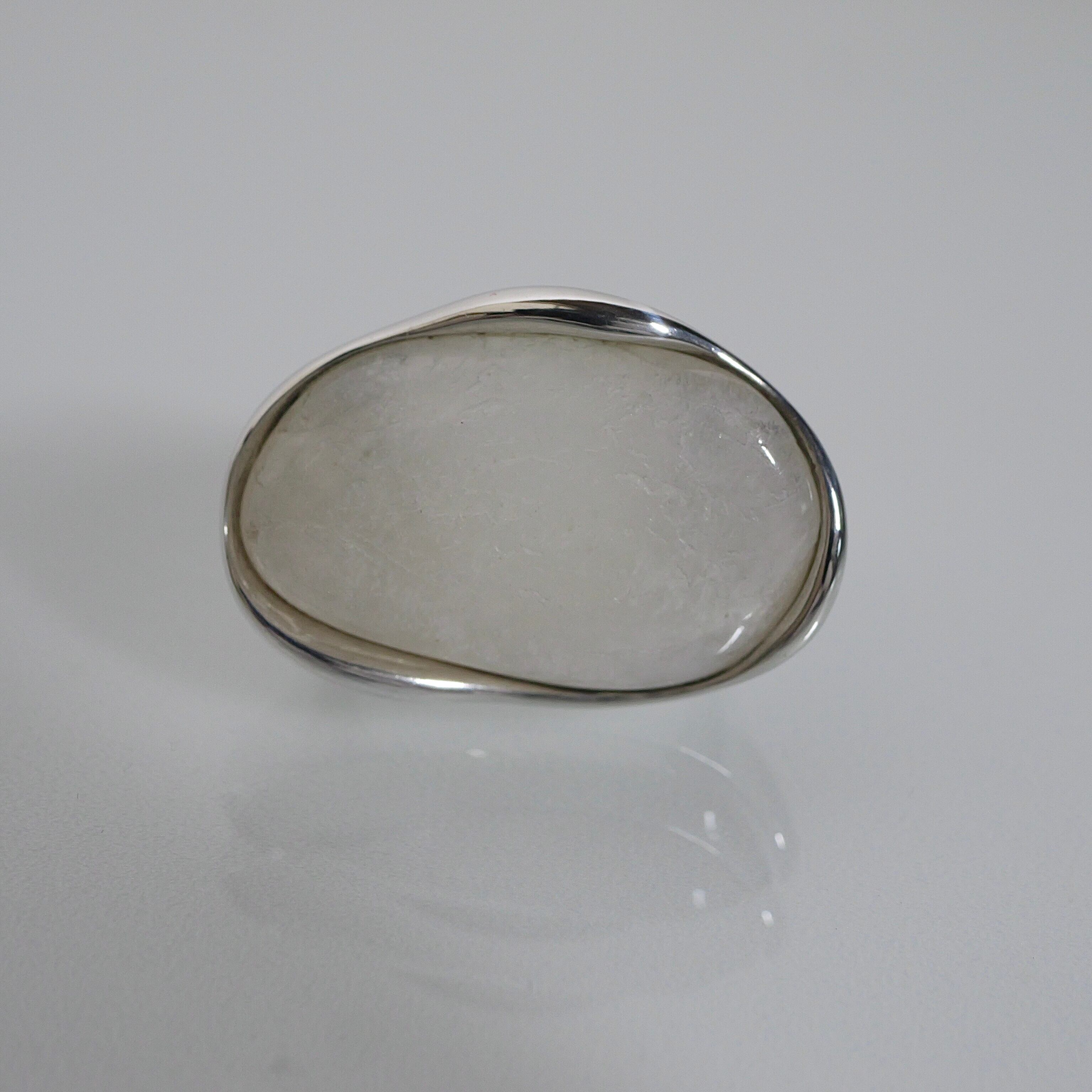 大ぶりなミルキーホワイトのムーンストーンはこれ一つでコーディネートのアクセントに。