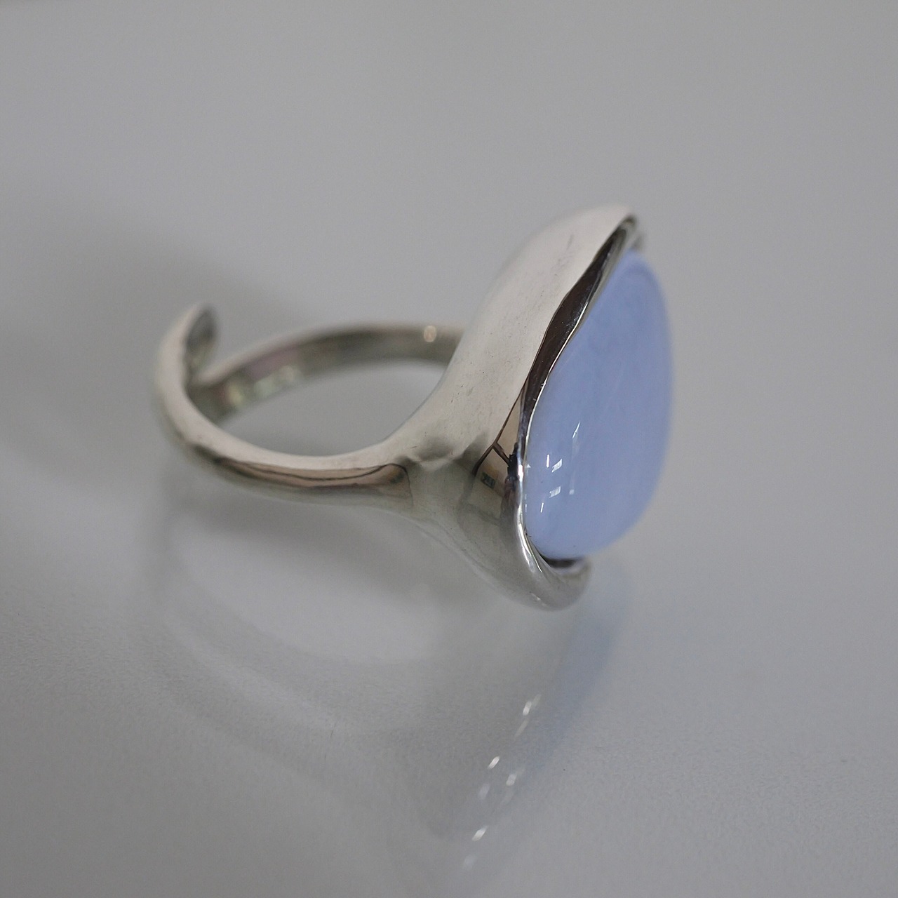 大ぶりなブルーレースアゲートはこれ一つでコーディネートのアクセントに。